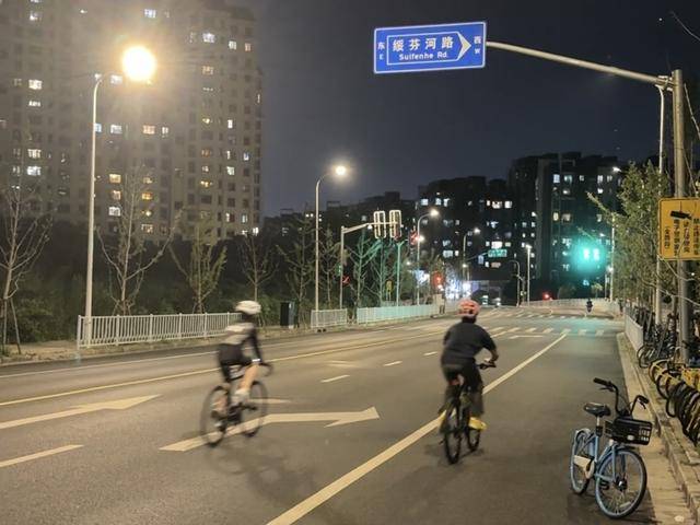 有骑行者告诉记者,他们居住在周边区域,结伴而来,该线路是自行发现,因为看到骑友往这个方向骑就跟着过来。附近有便利店,能方便休息、及时补给。“新江湾街道的骑行氛围浓厚,以前会走国权北路的大圈路线,但因修路变得坑洼,转而换成这边的小圈。”