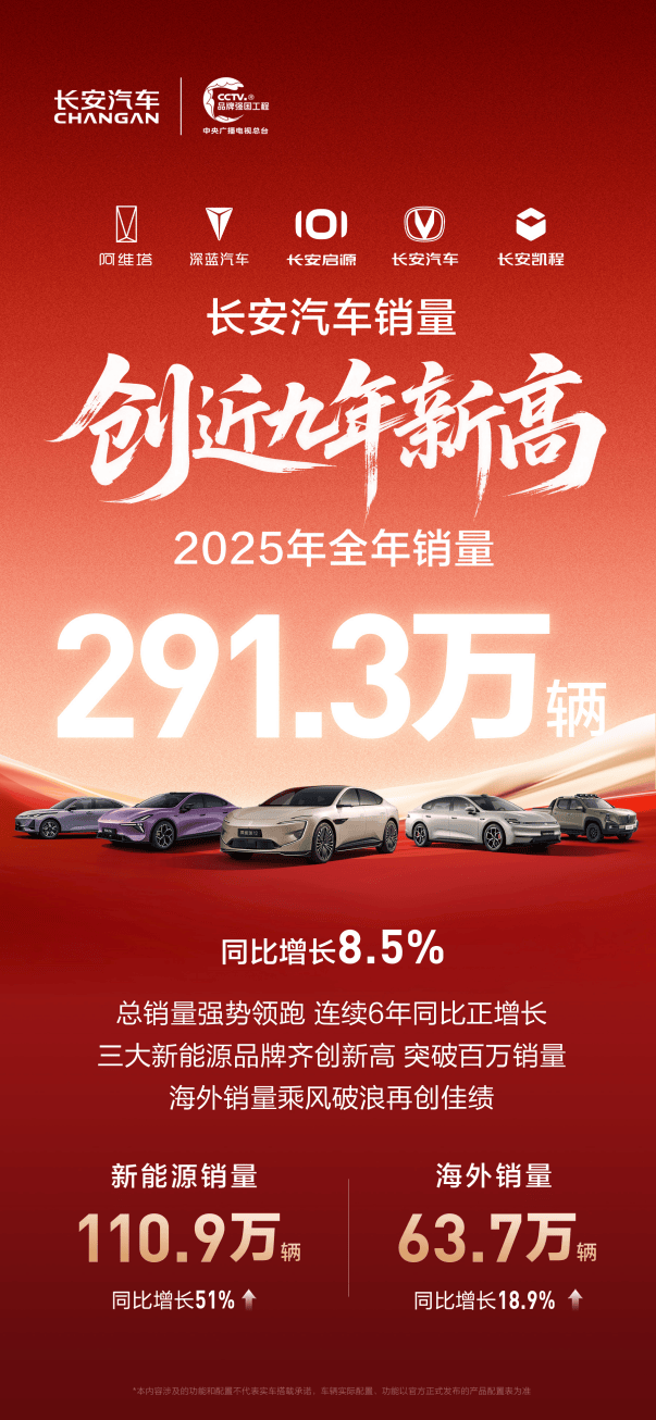 长安汽车2025年劲销2913万辆!近九年销量新高!新能源、燃油车双双向上!九游体育- 九游体育官方网站- 娱乐APP下载