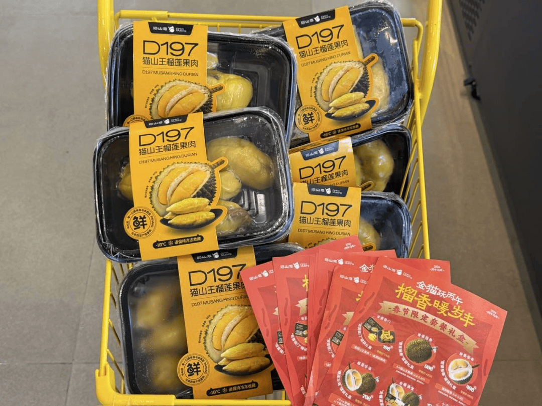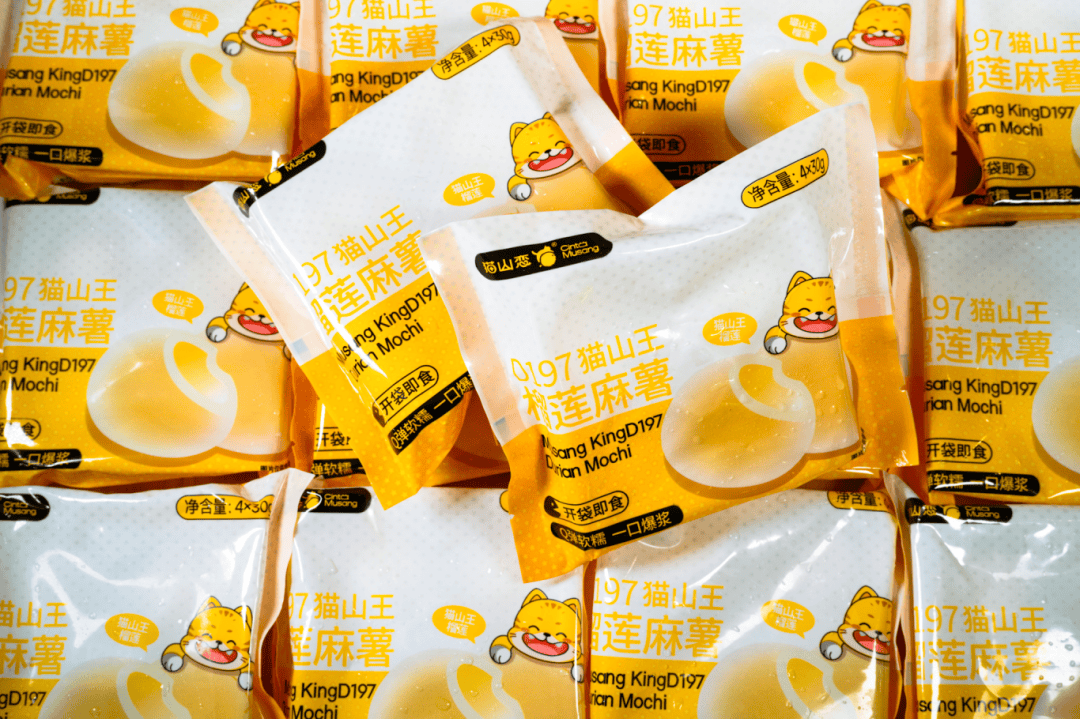 内馅大满足:严选猫山王果肉做馅,冷冻锁鲜技术让内馅如冰淇淋般丝滑浓郁,咬开即爆浆!