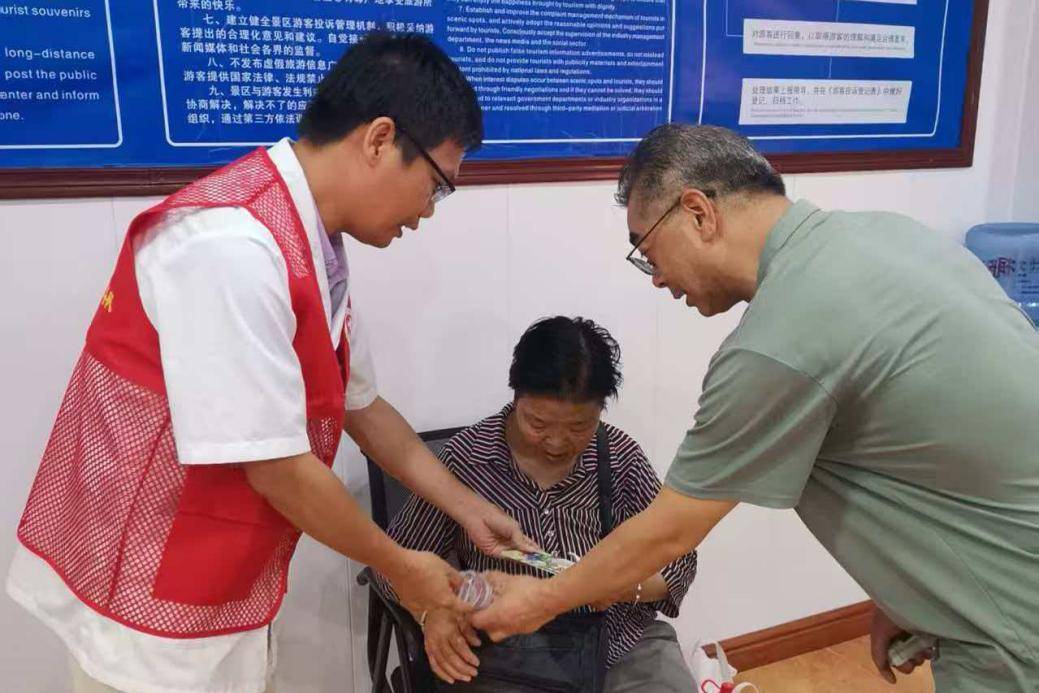 三亚大小洞天景区工作人员耐心为港澳台及外籍游客办理免费入园手续,主动手持电子血压计为老人测量血压;旅游志愿者穿梭在景区各处,轻声提醒游客爱护环境、文明游览。