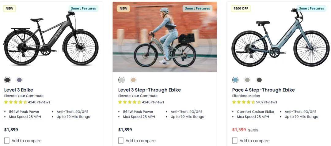 的较量。Aventon 以 “中国智造 + 本土化设计” 构建起难以复制的产品优势,其产品定价 普遍在1000-3000 美元左右,高于白牌产品却低于国际大牌,精准击中北美中产对 “品质、体验、性价比” 的核心需求。