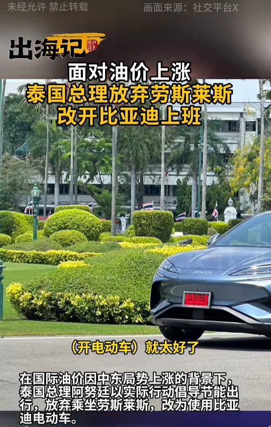 媒体此前报道了一幕特别的画面:总理阿努廷在日常出行中放弃了以往标志性的劳斯莱斯座驾,转而选择一辆中国比亚迪电动车作为上班用车。在此前的公开行程中,他还曾乘坐极氪品牌的车型。阿努廷在接受采访时鼓励民众多尝试电动车,因为它不仅节能环保,而且零尾气排放。今年2月底,美以对伊朗的袭击事件引发国际油价飙升,目前已突破每桶110美元。泰国高度依赖原油进口,仅3月,柴油价格就上涨约30%,企业运营成本随之增加,民众的支出能力也被明显压缩。这场由地缘冲突引发的能源困局,正以最直接的方式推动人们重新考虑出行方式。
