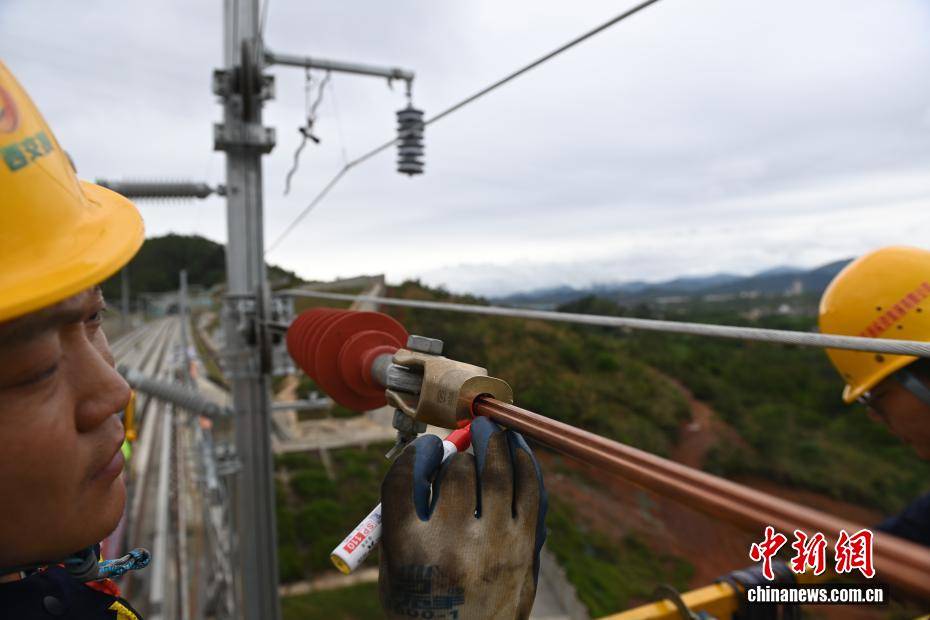 图为工人们正在进行接触网导线下锚前准备工作。中新网记者 蒋雪林 摄返回搜狐,查看更多